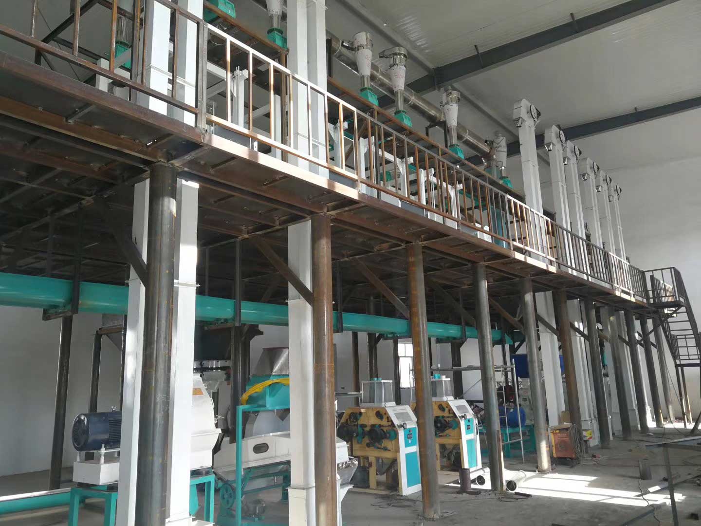內(nèi)蒙古赤峰100噸玉米加工生產(chǎn)線安裝現(xiàn)場(chǎng);