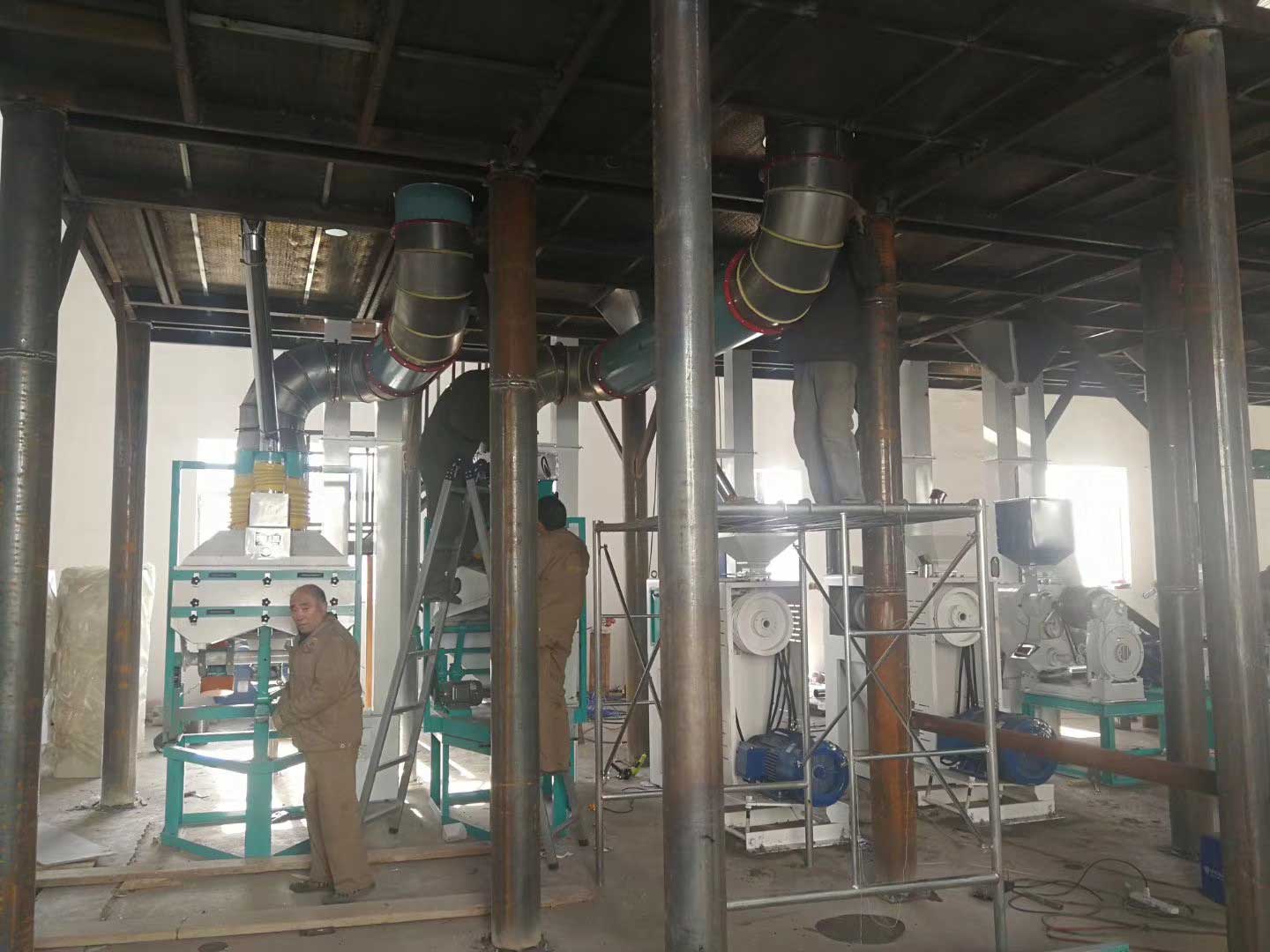 內(nèi)蒙古赤峰100噸玉米加工生產(chǎn)線安裝現(xiàn)場(chǎng);